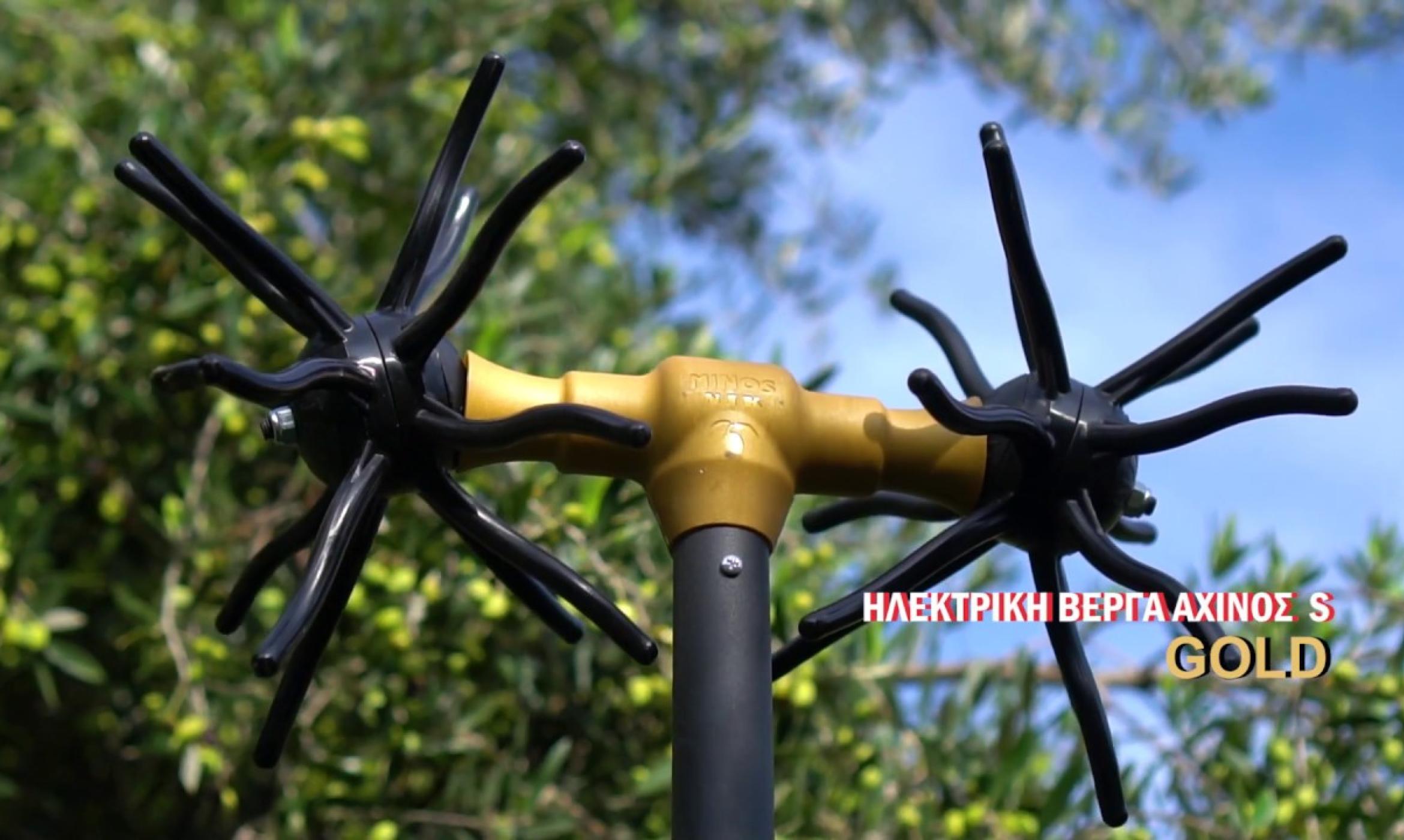 Its action is pulsating rather than rotary, with the rod head operating at a speed controlled by the operator, depending on the olive variety and harvesting conditions.