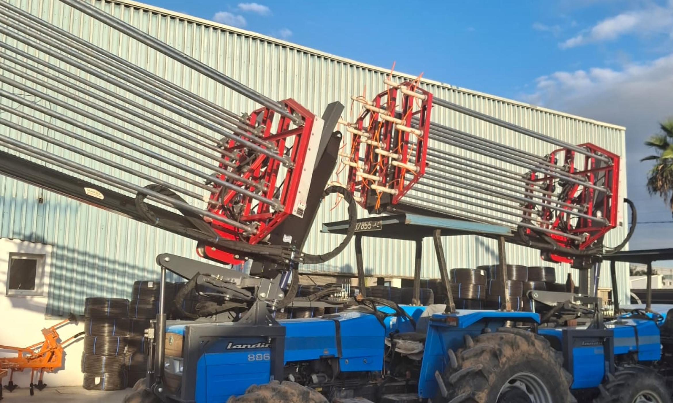 The Olive Harvesting Machine series (Mini, Mini S, Premium, and Ultra) is designed for mounting on orchard tractors, offering efficient and gentle olive collection.